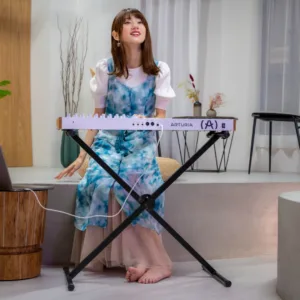 The Arturia KeyLab 49 mk3 is a professional MIDI controller featuring 49 velocity-sensitive keys, a 3.5″ color display, 12 RGB pads, and touch-sensitive controls like faders and encoders. It offers deep DAW integration with advanced creative tools such as Scale, Arpeggiator, and Chord modes, perfect for both studio work and live performances. Durable and customizable, it’s designed for superior playability with its semi-weighted keybed and high-quality construction.