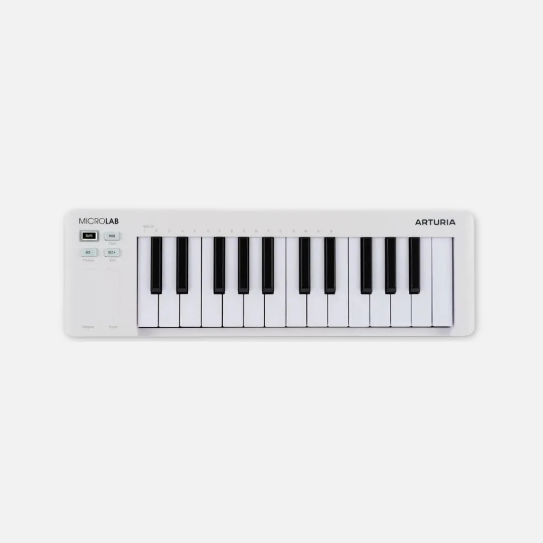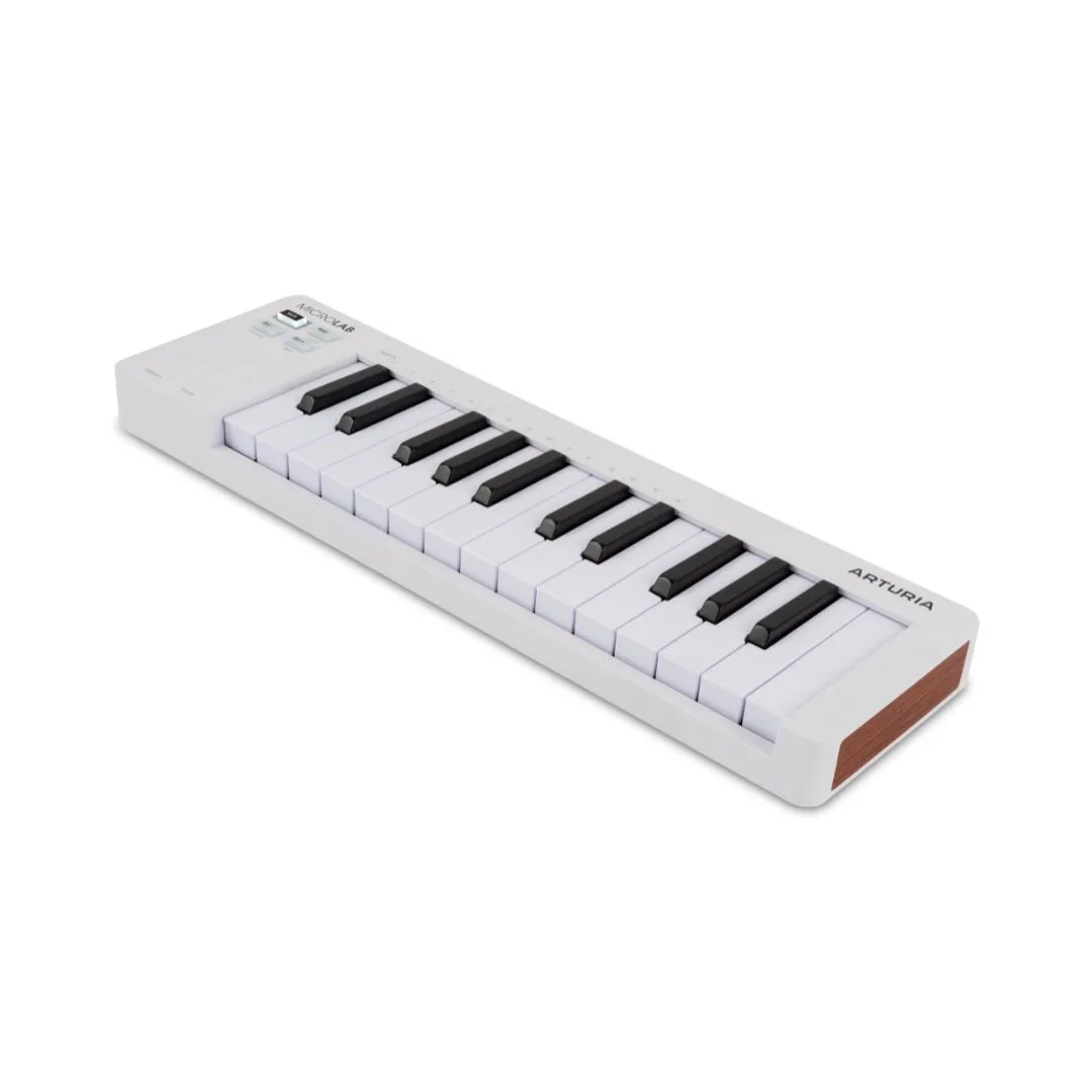 The Arturia MicroLab MK3 is a powerful yet portable MIDI controller designed for modern music creators. Featuring an upgraded slim keybed, USB-C connectivity, and a durable, lightweight design, it’s perfect for mobile setups and compact studios. Enjoy seamless integration with Analog Lab Intro and Ableton Live Lite, intuitive touch-sensitive mini-keys, dual touch strips for expressive control, and a new sustain pedal input for enhanced performance. Create instantly with 500 curated sounds and intuitive plug-and-play functionality.