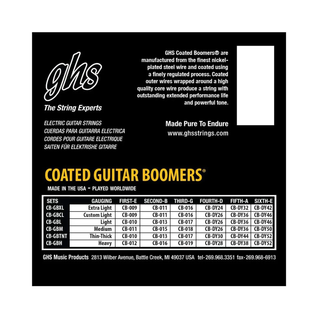 GHS Coated Boomers Extra Light (09–42) are a modern take on the legendary Boomers line, crafted for players who demand longevity and vibrant tone. Featuring precision-coated nickel-plated steel wrap wire and coated plain steels, these strings deliver extended performance life without compromising feel or clarity. Wrapped around a high-quality core, they offer consistent, powerful tone with a smooth, balanced touch—ideal for fast, expressive playing across all genres.