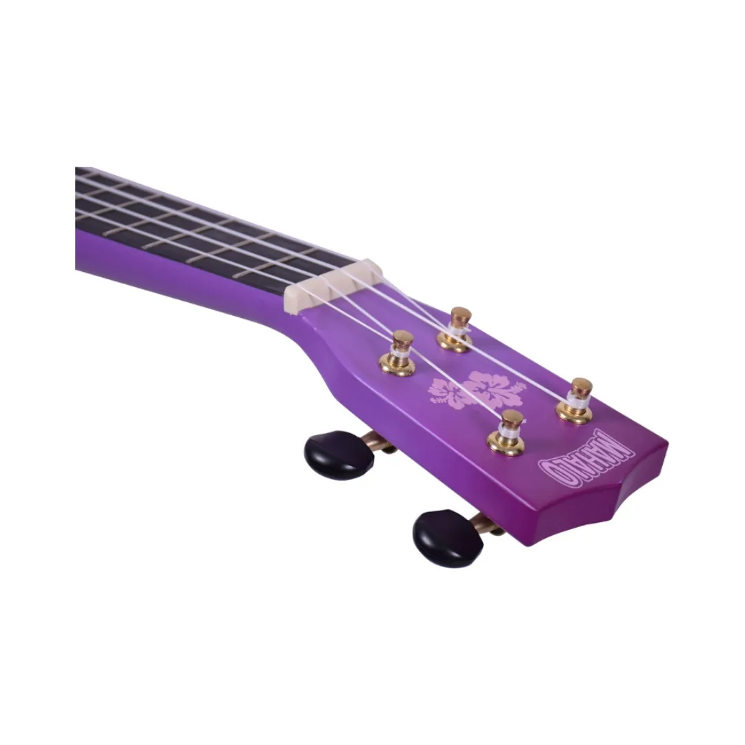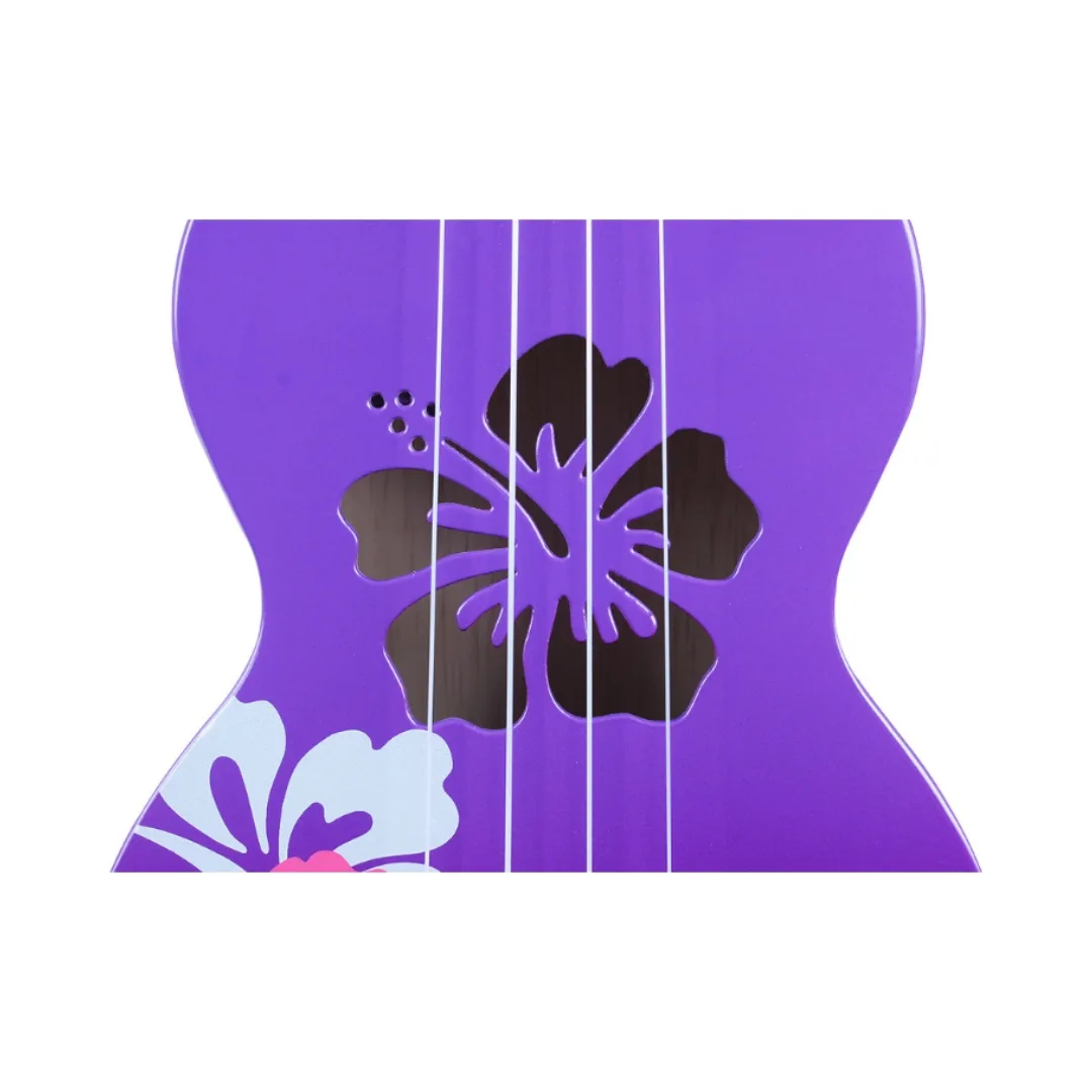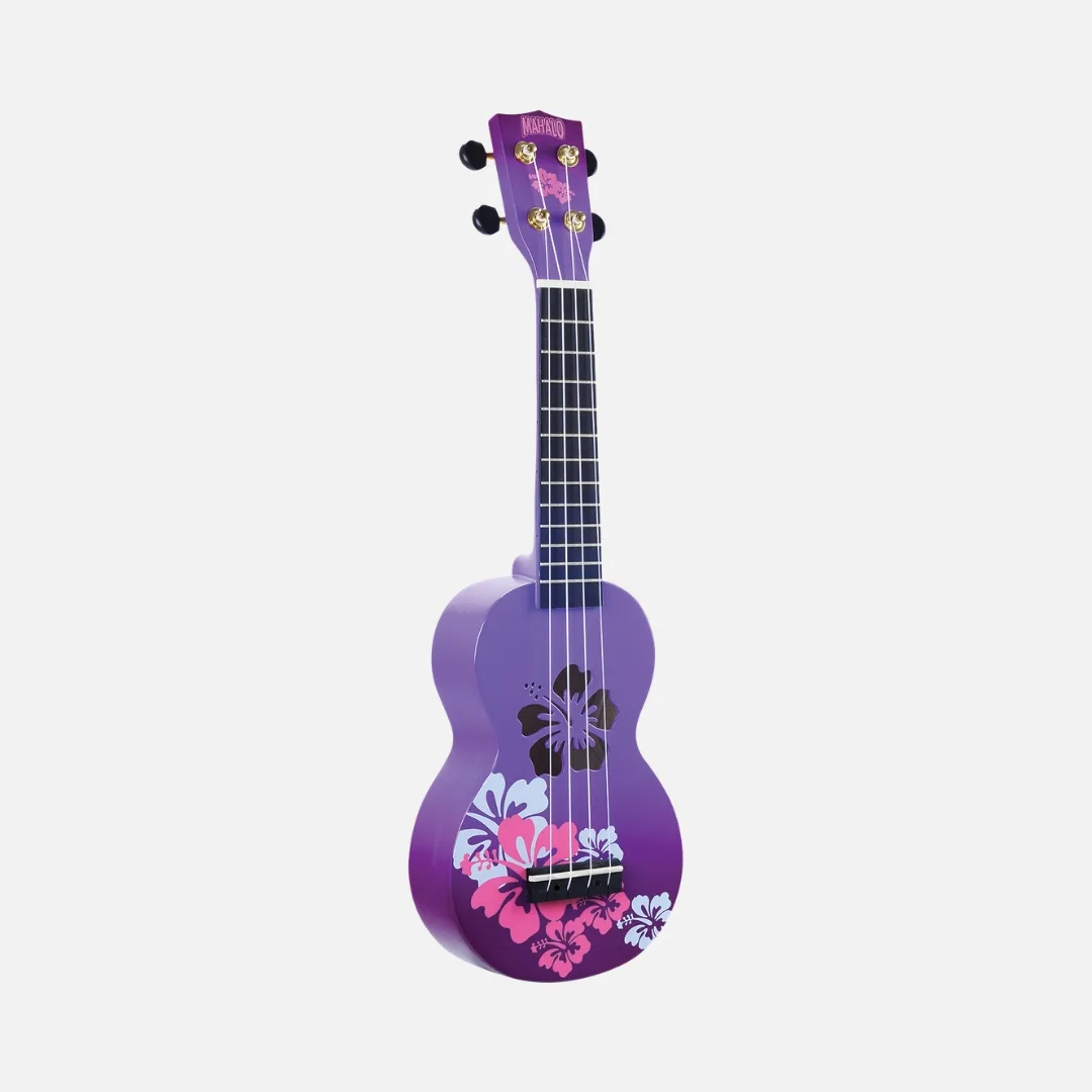 The Mahalo Designer Series Soprano Ukuleles pay homage to Hawaii with a captivating "Hibiscus" theme. Each ukulele in this collection features elegant decorations inspired by the iconic hibiscus flower, the official state flower of Hawaii. Thoughtfully adorned with stylized soundholes and intricate details, these instruments allow players to immerse themselves in the essence of the islands as they strum.