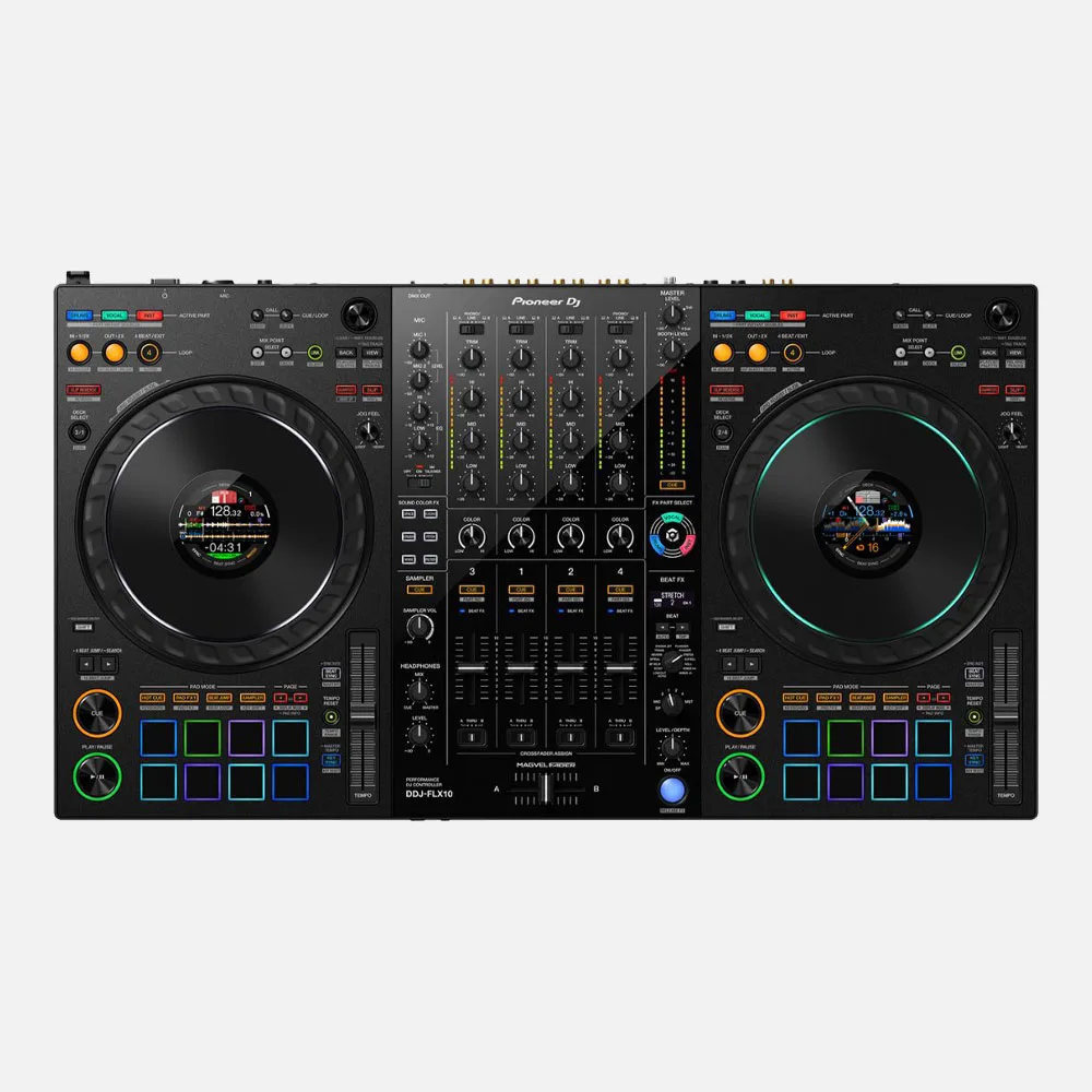 The DDJ-FLX10 is a 4-channel performance DJ controller for rekordbox and Serato DJ Pro. It includes a host of brand-new features including Track Separation technology, which enables new creative possibilities such as the easy performance of mash-ups on the fly with no need to prepare tracks in advance.