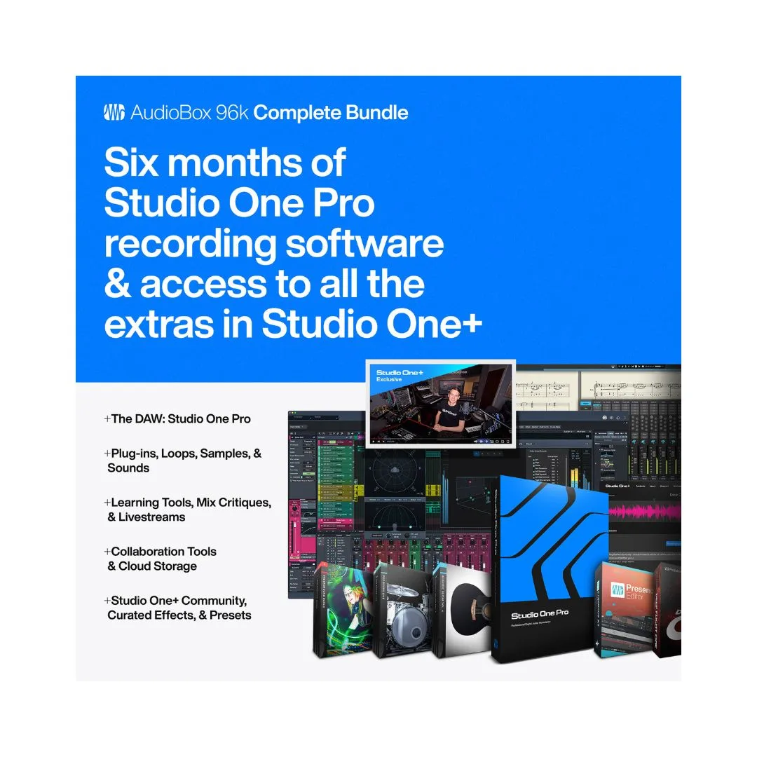 - Studio One Pro DAW Recording Software Access Included: 6 months of Studio One+ with access to Studio One Pro DAW recording software, add-ons, and more.