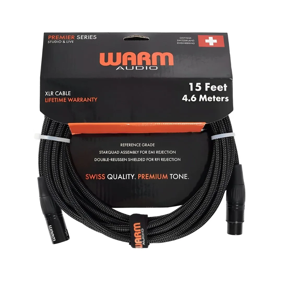 The Warm Audio Premier Series XLR Cable ensures high-end signal transmission between balanced gear, such as microphones and audio equipment. Featuring gold-plated connectors, a star-quad wiring scheme for superior RFI rejection, and double-Ruessen shielding for enhanced EMI protection, this cable is engineered for pristine sound quality. A braided outer wrap prevents tangling, adding durability and strength. Crafted in collaboration with Gotham AG, this cable guarantees optimal performance, making it ideal for both studio and live sound applications. Plus, it comes with a lifetime warranty.